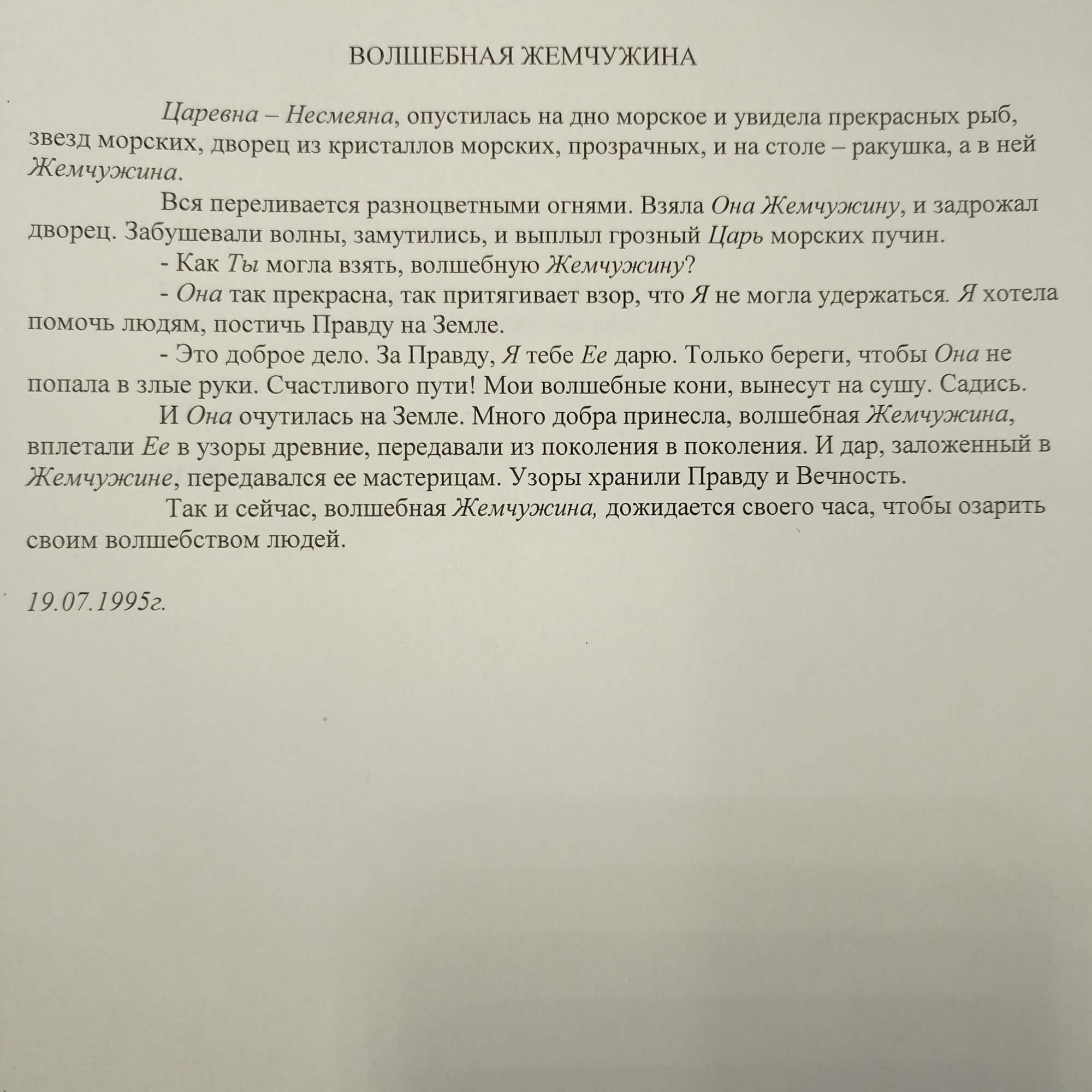 Волшебная жемчужина, 19.07.1995 г.
