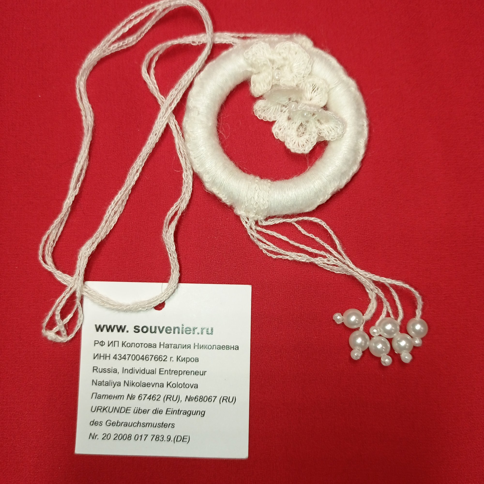 Дизайнерские украшения изо льна: оберег «Жемчуг». Вес: 10 г, длина подвески – 510 мм. Материал: льняные нити, жемчуг. Ручная работа с использованием техники вязания крючком. Цвет: белый.