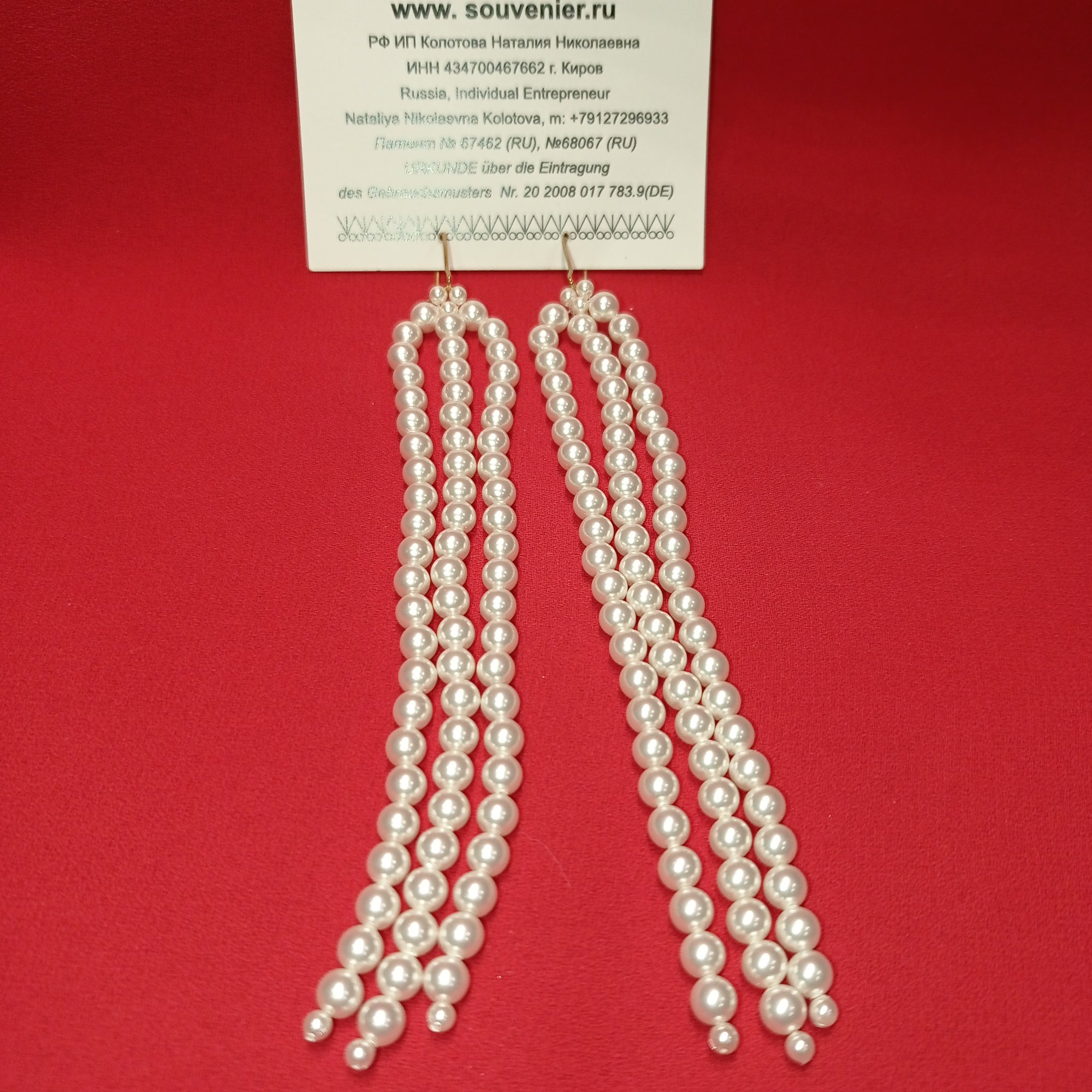 Дизайнерские украшения из "Жемчуг Swarovski elements": серьги «Водопад» из трёх нитей. Вес: 30 г, длина – 110 мм. Материал: "Жемчуг Swarovski elements" диаметр - 3; 5 мм. Цвет: белый.