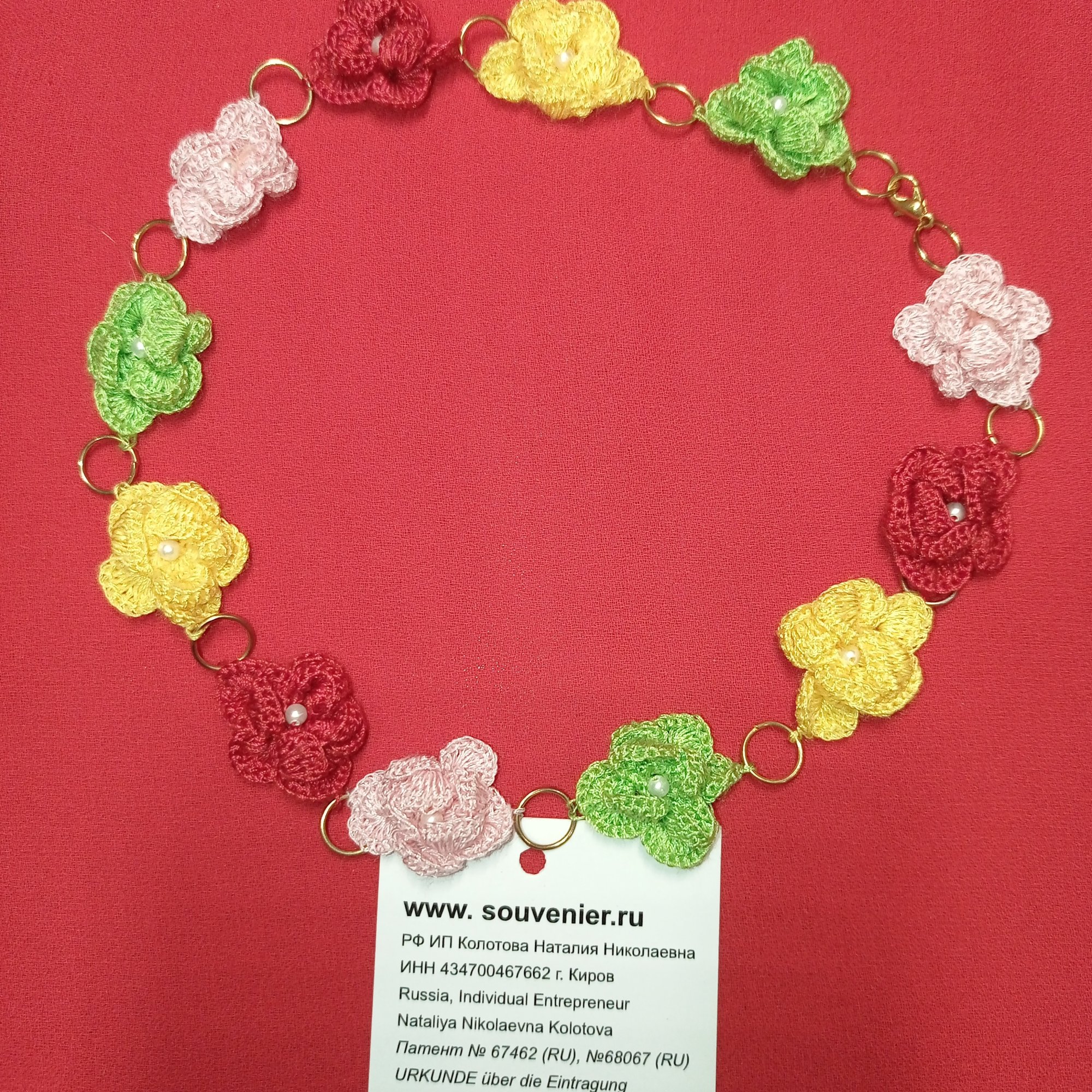 Дизайнерские украшения из "Жемчуг Swarovski elements": колье «Луговые цветы». Вес: 20 г, длина – 430 мм. Материал/ Инструмент "Жемчуг Swarovski elements" диаметр - 3 мм, шёлковые нити / крючок. Ручная работа с использованием техники вязания крючком