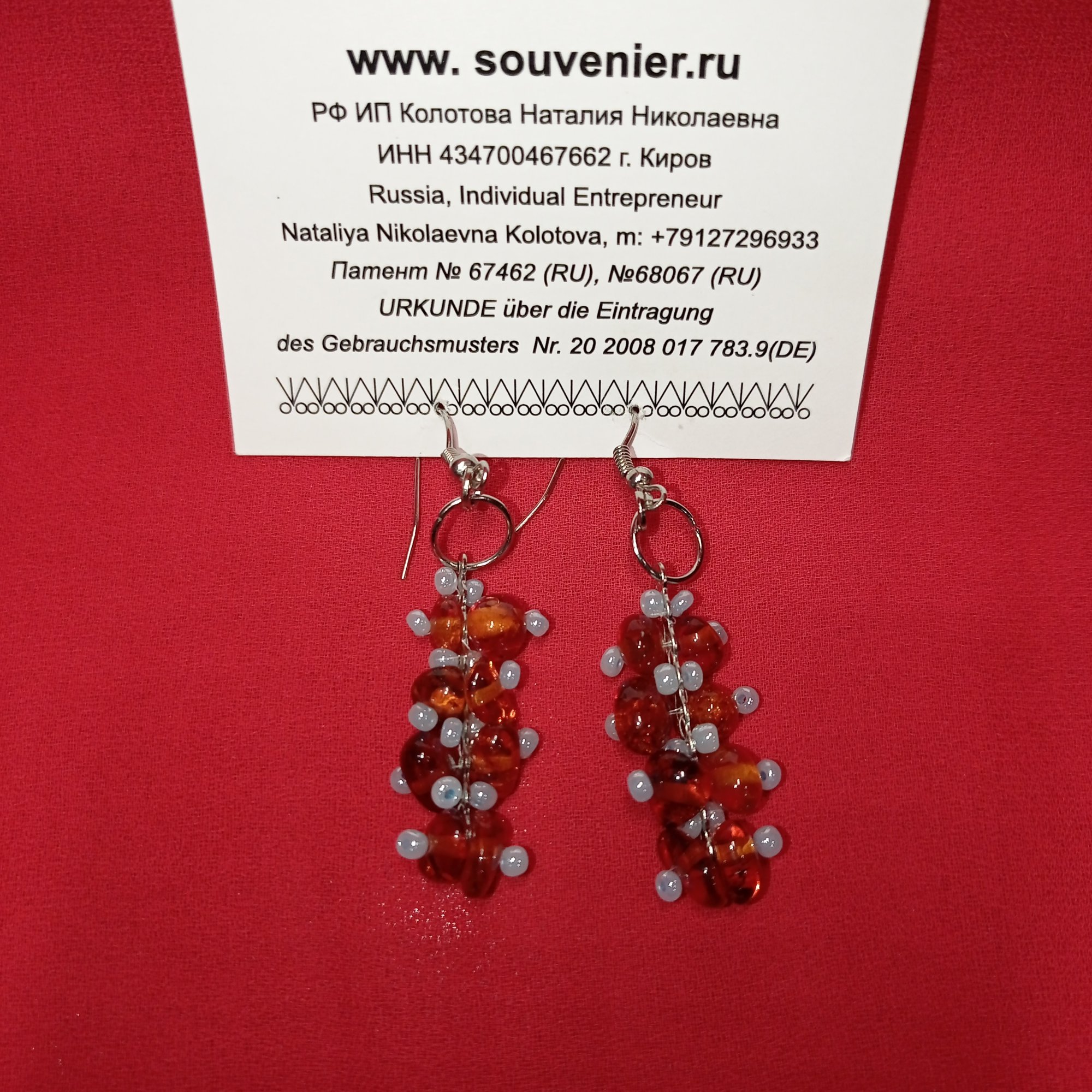 Дизайнерские украшения из натуральных камней: серьги (швензы) «Металлическая пластина с янтарём». Вес: 20 г, длина – 60 мм. Материал: янтарь, бисер, металл. Цвет: оранжевый, голубой.