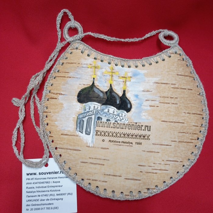 Изделия из бересты для украшения интерьера: сумка с росписью "Диск". Вес: 200 г, диаметр = 160 мм. Материал/ Инструмент: береста, льняные нити, темпера / крючок, роспись. Ручная работа с использованием техники вязания крючком. Цвет: светло-жёлтый.