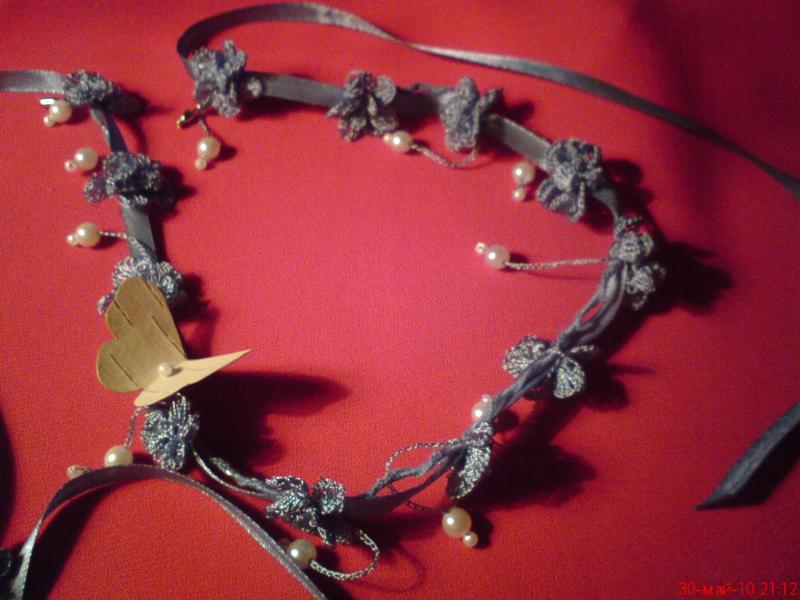 Материал: шёлковые нити 100%, медная проволока - 1 мм, цвет: зелёный, сиреневый, инструмент: крючок № 0,7 - 1.