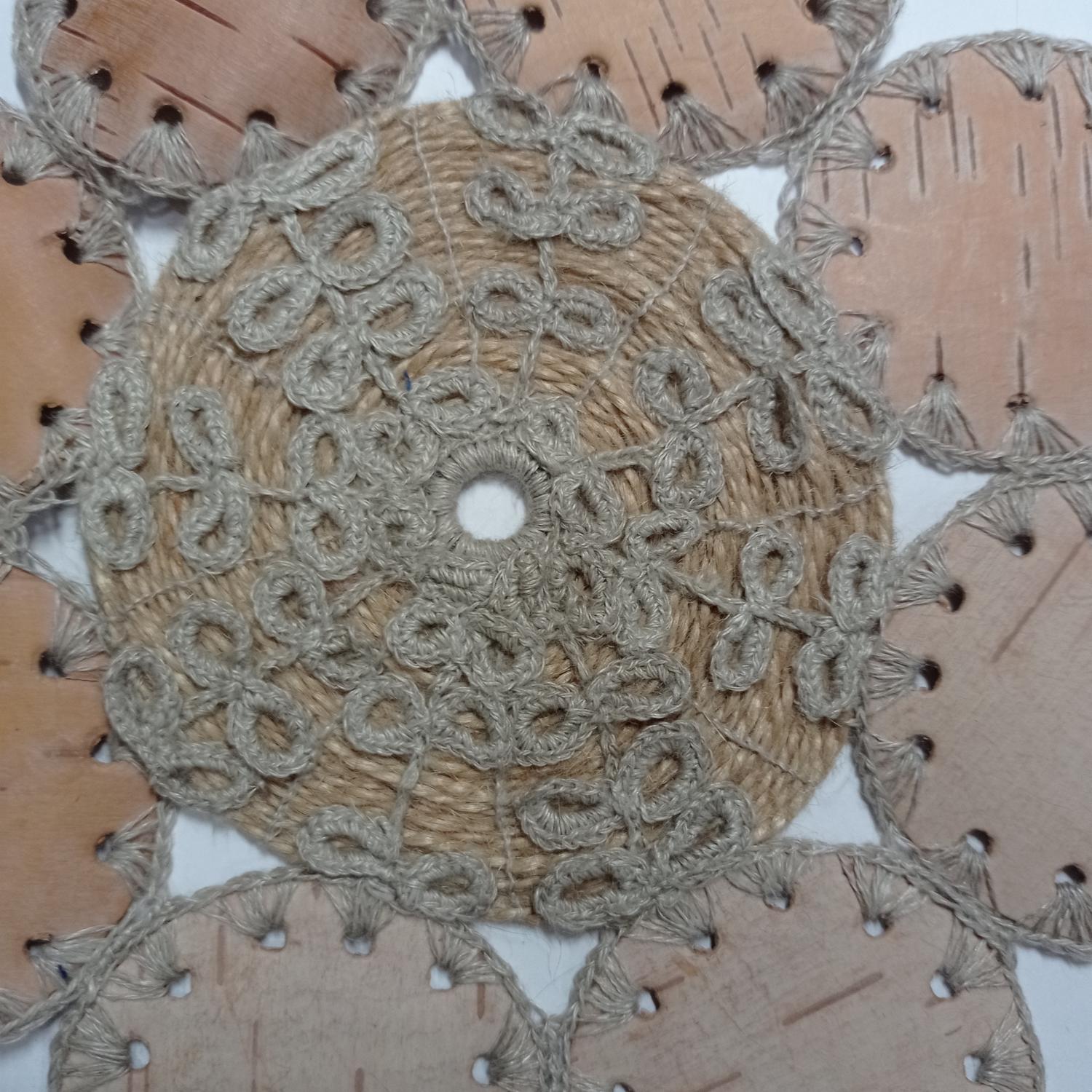 Материал: льняные нити, береста, цвет: бежевый, инструмент: крючок № 1 - 1,5.